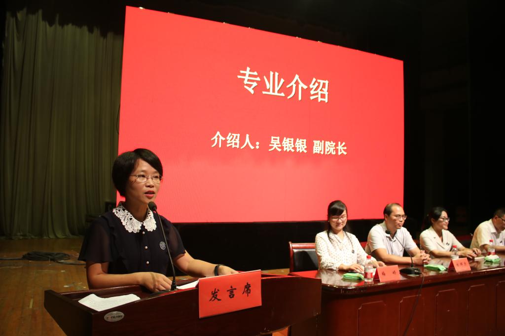 吴银银副院长从培养目标、专业人才培养标准、主干学科、专业核心课程、学制学位及学分要求等五个方面介绍专业。