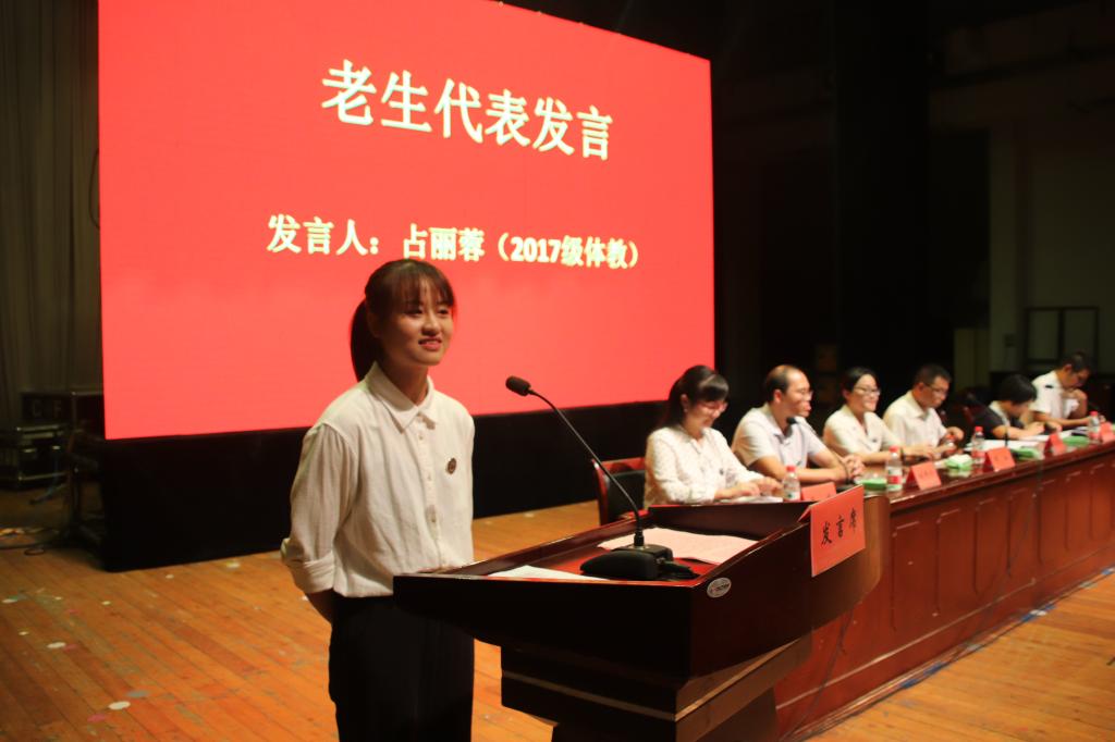 老生代表占丽蓉同学以同龄人和过来人的身份,分享了自己的学习心得,介绍了莘莘学子从青涩、稚嫩到理性、成熟的发展轨迹。