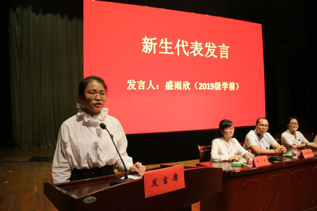 新生代表盛雨欣同学,表达了自己对大学生活的憧憬与期待,号召全体新生时刻谨记“澡身浴德、修业及时”的校训精神,一起同德、同行、同铸辉煌。